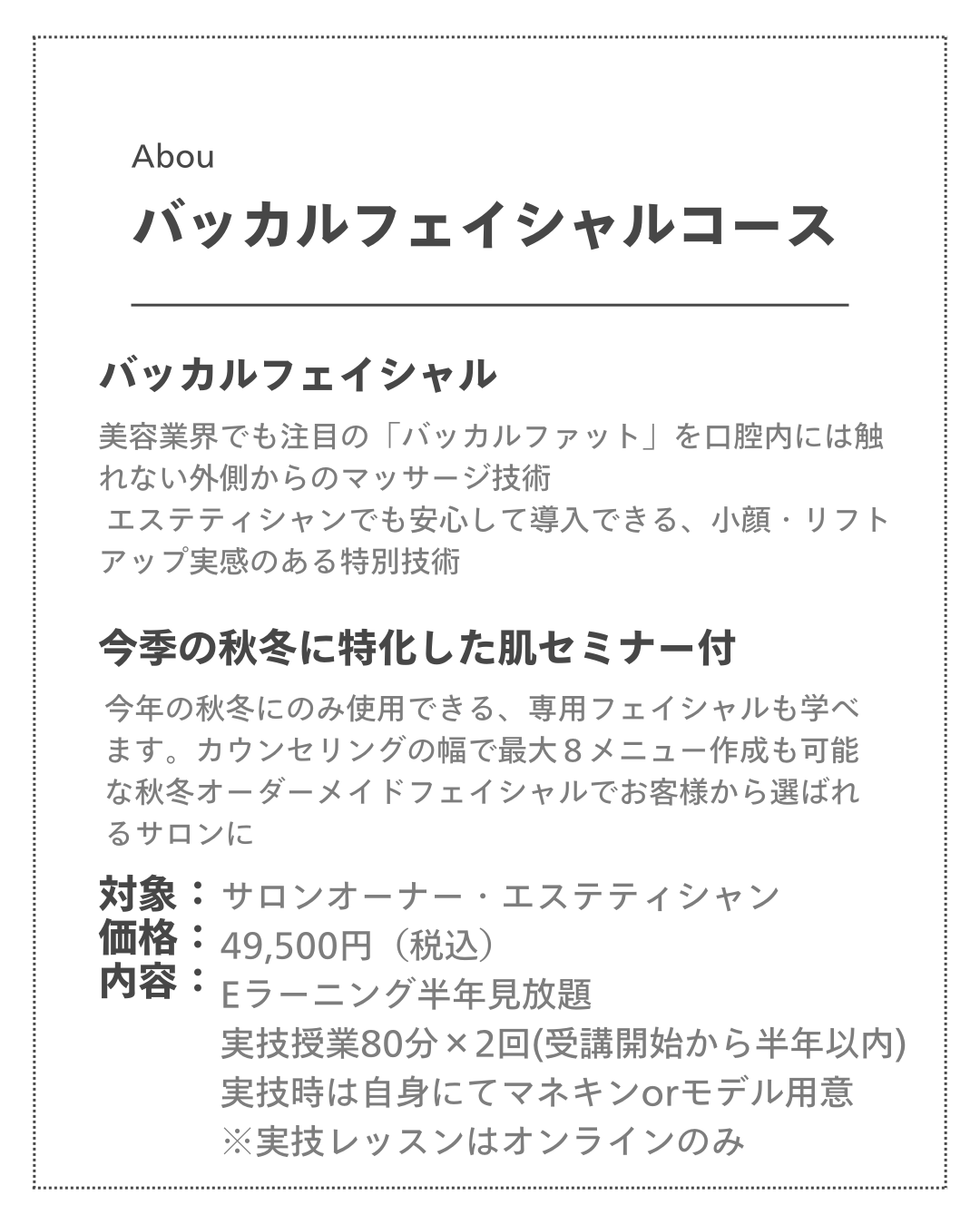 「バッカルファット」に着目しながらも、当スクールでは口腔内には触れず、外側からの安全なマッサージ技術を学べます。